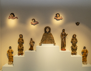 - Увидят редкие и уникальные экспонаты: полихромную скульптуру Николая Можайского – самую раннюю в коллекции, которую специалисты датируют XVII в., монументальное распятие с предстоящими, которое может быть отнесено к середине XVIII в., прекрасные фрагменты иконостасов в виде херувимов, ангелов, апостолов, происходящие из Алексеевского женского монастыря в Арзамасе.