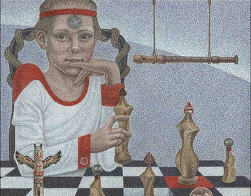 Работы Александра Насекина узнаваемы не только своим глубоким философским содержанием и оригинальным стилем. Произведения словно сотканы из сотен тысяч тончайших разнонаправленных штрихов изографа, формирующих единую плотную поверхность сложных композиционных историй.