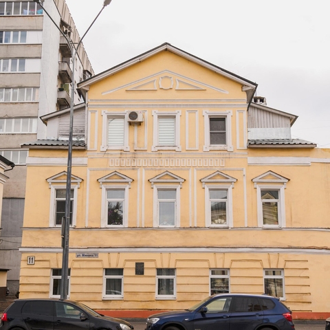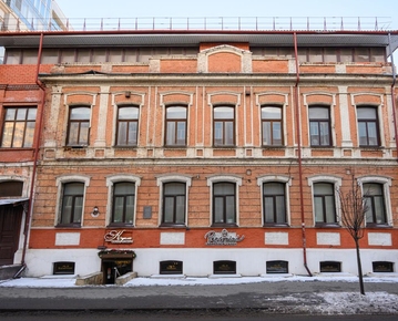 Здание середины XIX века выполнено в стиле академической эклектики, с чётким соблюдением красной линии улицы и богатым декоративным оформлением. С 1885 по 1910 год здесь располагалась нижегородская телефонная станция — именно в нашем городе в 1881 году появилась первая гражданская телефонная линия в России, связавшая пристань на Волге с конторой пароходного общества «Дружина».